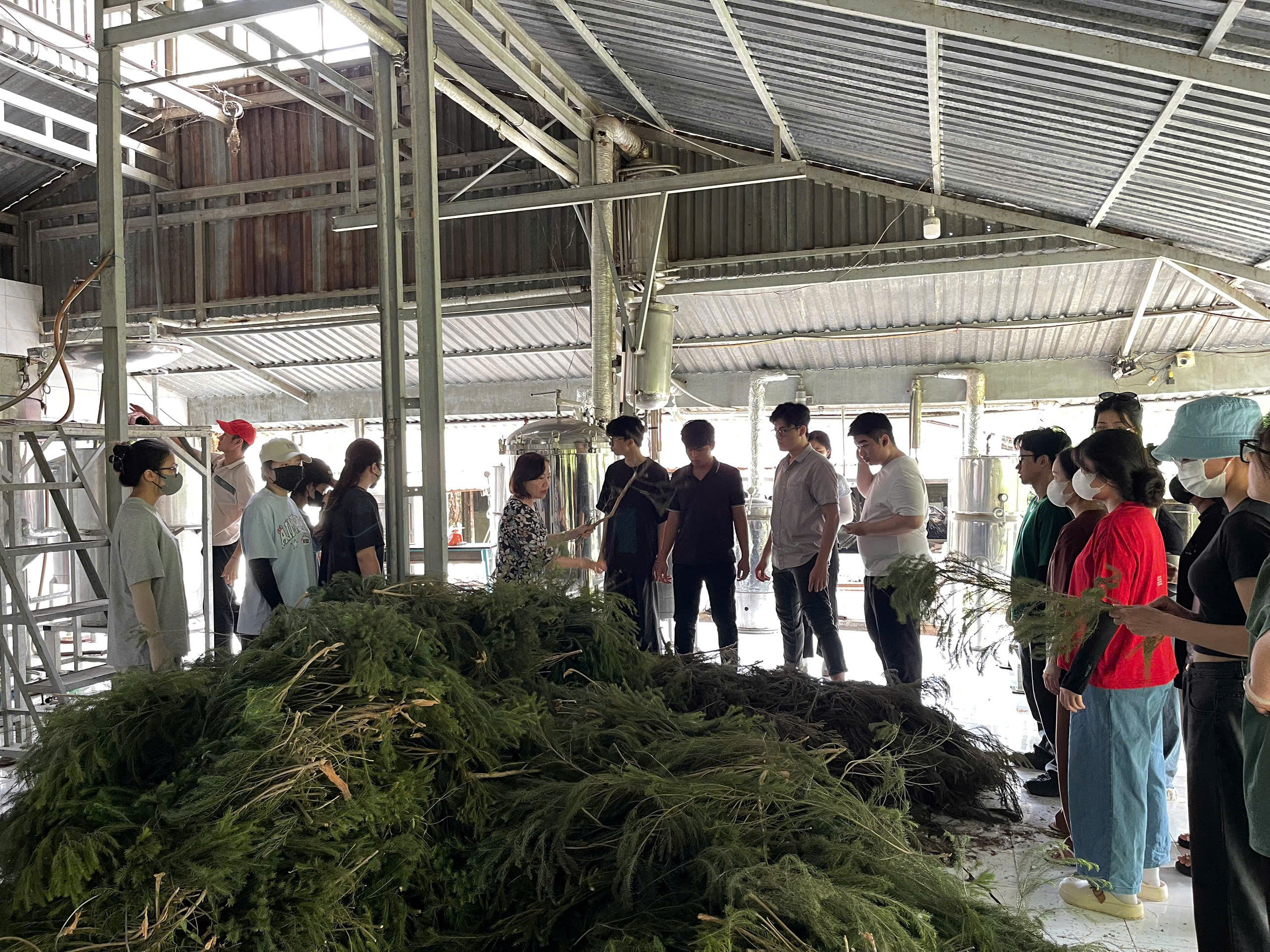 Chương trình thực tập diễn ra trong 5 ngày. Đây là dịp để các “Dược sĩ tương lai” tiếp cận quy trình sản xuất thực tiễn tại nhà máy Dược phẩm dược liệu hiện đại, đồng thời hiểu rõ hơn về vai trò của ứng dụng dược liệu trong chăm sóc sức khỏe cộng đồng. Sinh viên được tham quan trực tiếp hệ thống dây chuyền sản xuất, quy trình kiểm soát chất lượng nghiêm ngặt, thực hành chiết xuất tinh dầu Tràm trà – sản phẩm chủ lực của Mộc Hoa Tràm và đồng hành cùng đội ngũ kỹ sư tại Phòng kiểm tra chất lượng trong các thao tác đánh giá hiệu quả hoạt chất, phân tích mẫu thử chuẩn hóa sản phẩm.